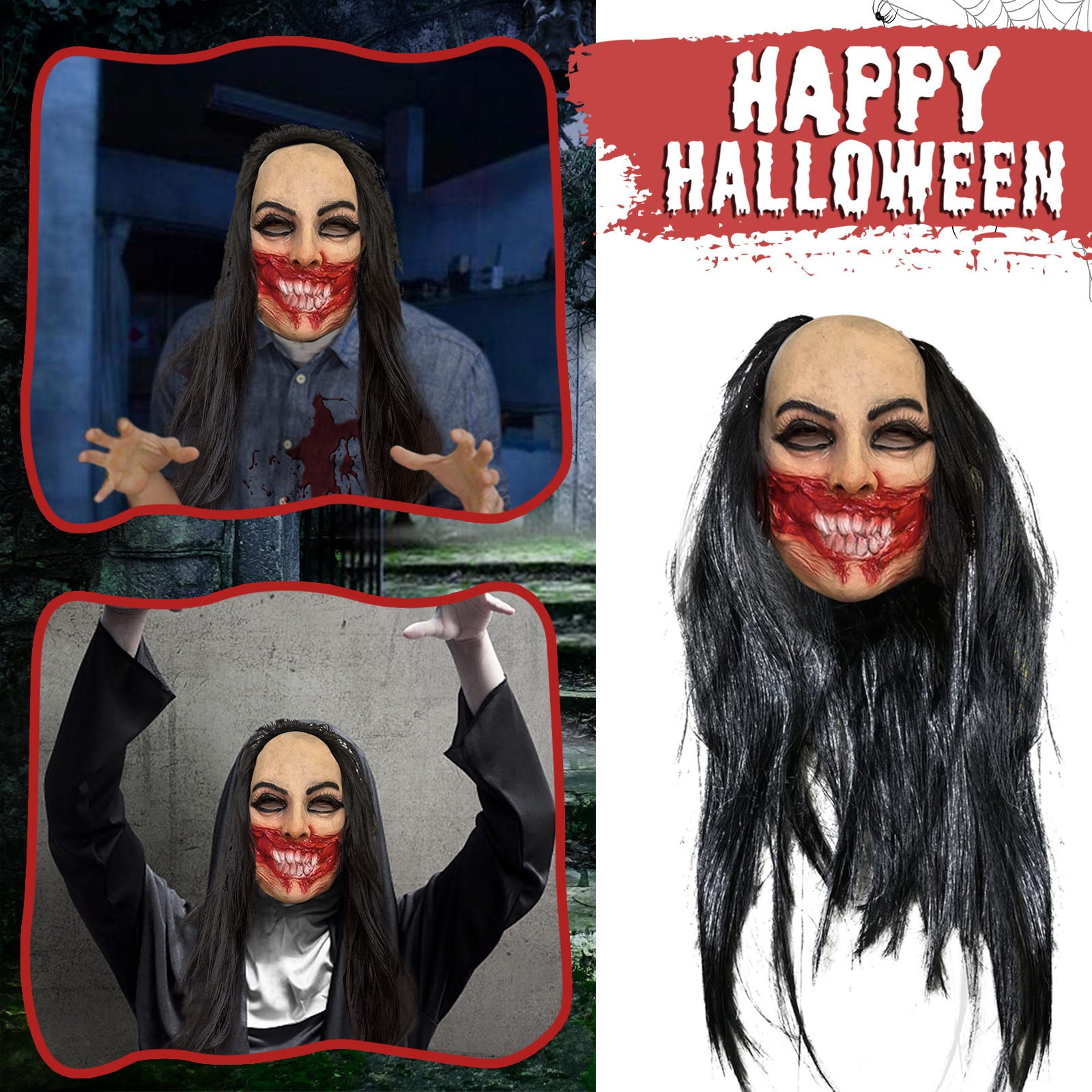 Halloween Devil Face Guard With Long Hair Horror Face Guard Scary Latex Skin With Long Hair Halloween Creepy Cosplay Props Realistic Scary Decor Walmart Com
